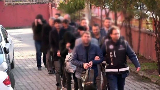 - Zanlıların adliyeye getirilmeleri Karabük merkezli suç örgütü operasyonu - Karabük merkezli 6 ilde düzenlenen operasyonda, 9 kişiden oluşan suç örgütü çökertildi - Suç şebekesi liderinin de gözaltına alındığı operasyonda, üyelerin yakalanmamak için şifreli konuşma yaptıkları tespit edildiKARABÜK (AA) - Karabük merkezli 6 ilde düzenlenen operasyonda, 9 kişilik suç örgütü çökertildi.Alınan bilgiye göre, Karabük Cumhuriyet Başsavcılığı'nın yürüttüğü soruşturma kapsamında, İl Emniyet Müdürlüğü KOM Şube Müdürlüğü ekipleri, yaklaşık 3 aylık teknik ve fiziki takibin ardından Karabük , Bursa, Yalova, Rize, Van ve İstanbul'da organize suç örgütü üyelerinin birçok vatandaşın mağduriyetine sebep olduğunu tespit etti.İllerde eş zamanlı düzenlenen operasyonda, örgüt elebaşı S.K. ile F.G, E.B, N.Y, M.T, H.T, U.Y, S.K. ve M.M, "silahla yaralama", "maddi menfaat elde etmek", "zorla çek senet imzalatmak", "baskı, silahla tehdit", "ruhsatsız silah, bıçak, mermi bulundurma", "uyuşturucu ve uyarıcı madde bulundurmak ve kullanmak" suçlarını organize şekilde işledikleri iddiasıyla gözaltına alındı.Uyuşturucuyu "yeşil sabun", mermiyi "leblebi", haraç alınacak yeri "mantolama" ve çete liderini "gölge" gibi şifreli kelimelerle ifade ettikleri belirlenen şüphelilerin adreslerinde ve üzerilerinde yapılan aramalarda, ruhsatsız 7 silah ve 2 otomatik tüfek, bu silahlara ait 99 mermi ve bir miktar uyuşturucu madde ele geçirildi. Karabük 'e getirilen şüpheliler, emniyetteki işlemlerinin ardından adliyeye sevk edildi. Suç Örgütü OperasyonuUyuşturucu MaddeRuhsatsız SilahÇete LideriSuç Örgütü