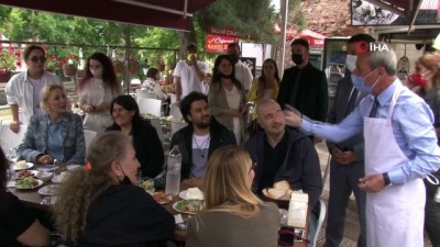 - Kültür ve Turizm Bakanı Mehmet Nuri Ersoy’un eşi Pervin Ersoy’un yürüttüğü “Her Şehri Ünlülerle Geziyoruz” projesi kapsamında Rotahane ekibinin Edirne gezisi çok renkli görüntülere sahne oldu. Rotahane ekibinin “Her Şehri Ünlülerle Geziyoruz” projesi kapsamında Kültür ve Turizm Bakanı Mehmet Nuri Ersoy’un eşi Pervin Ersoy ile birlikte sanatçılar Serkan Çağrı, Suzan Kardeş, Açelya Akkoyun ve Serap Çiftçi Edirne’ye geldi. Edirne’nin meşhur tarihi ciğerinin tadına bakmak isteyen ekibin ilk durağı, Tarihi Ciğerci Bahri Dinar oldu. Bakan Ersoy’un eşi Pervin Ersoy, tava ciğer tezgahının başına geçip meşhur Tava Ciğer’i pişirdi. Renkli görüntülerin oluştuğu mekanda Edirne’nin yerel müzisyenleri de eşlik etti. Pandemi sebebiyle yaklaşık 6 aydır kapalı olan restoranların hizmete açılmasıyla birlikte yerli ve yabancı turistler tarihi Edirne çarşısında ciğerin tadına baktı. Rotahane ekibi bugün ve yarın Edirne’de gezi programları düzenleyecek. (MB-