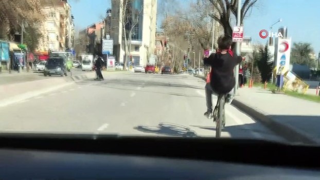 - Kocaeli’de yolda bisikletiyle tek teker üzerinde giden kameralara yansıdı. Hem kendisinin, hem de diğer sürücülerin hayatını tehlikeye atan genç, yürekleri ağıza getirdi. Olay, Kocaeli’nin İzmit İlçesi Cedit Mahallesi Turan Güneş caddesinde meydana geldi. Edinilen bilgiye göre, cadde üzerinde akan trafikte bisikletiyle metrelerce tek teker üzerinde giden şahıs kendinin ve çevredeki vatandaşların can güvenliğini tehlikeye attı. O anlar ise olayı gören vatandaşlar tarafından cep telefonu ile kaydedildi. Görüntülerde, şahsın bisikletiyle tek teker üzerinde tehlikeli yolculuk yaptığı görülüyor. (HY-HFV-