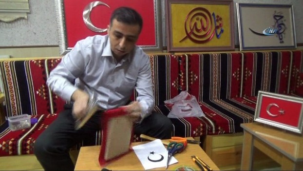 Çiçek, “3 yıl önce Bartın’da çalışırken bir arkadaşımın sosyal medya hesabında gördüm. İlk önce kendi evime birkaç tane yaptım. Daha sonra hobi olarak başladık ve “Bize de yapsana, biz de istiyoruz” diyenler oldu. Şuana kadar 3 yıl içinde yaklaşık 350 adet tablo bitirip sahiplerine teslim ettim. Türkiye genelinde 26 ile, Kuzey Kıbrıs Türkiye Cumhuriyeti ve Fransa’nın Paris kentine tablo gönderdik. Kuzey Kıbrıs Türk Cumhuriyeti’ne gönderdiğimiz tablo Rauf Denktaş’ın siluetinin var. KKTC’deki tablo Başbakan Serdar Denktaş’ın odasında bulunuyor. Hat eserleri, bayrak ve şirket logoları yapıyoruz. Yine her ay bir şehit ailesine yapmış olduğumuz bir bayrağı hediye ediyoruz. Tabloları yarım saat ve 2 gün gibi sürelerde tamamlıyorum. Tablo fiyatları da 50 ile 400 lira arasında değişiyor” (HLL-