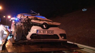TEM’de trafiği kilitleyen kaza...Otomobil takla attı