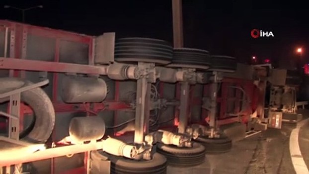 ( İSTANBUL )- Virajı alamayan TIR yola devrildi, hız kadranı 20 km’de kaldı İSTANBUL