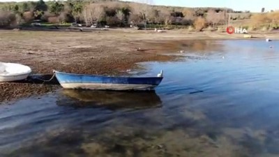 - İstanbul’un barajlarının genel doluluk oranı yüzde 20 seviyelerine düşerken, Terkos Gölü'nde ise su seviyesi 21.42'ye kadar geriledi. Gölün yaklaşık 100 metre çekilmesi ile tekneler karaya otururken, ortaya çıkan çöpler havadan görüntülendi.Yurt genelinde yağışların azalması ise kurak geçen sonbaharın ardından tehlike çanları çalmaya devam ediyor. İstanbul’da Terkos Gölü'nün son durumu havadan çekilen görüntülerde gözler önüne serildi. Gölün su seviyesi İSKİ verilerine göre yüzde 21.42'ye kadar düşmesi ile ortaya çıkan çöp yığınları havadan görüntülendi. Gölün içine atılan araba lastikleri, cam şişeler ve atıklar gün yüzüne çıktı. Barajlardaki doluluk oranı son 10 yılın en düşük seviyesine geriledi. Kuraklığı anlatan en çarpıcı görüntüler ise daha önce iskele olarak kullanılıp betona bağlanan teknenin karaya oturması oldu. Bu gibi onlarca teknenin suyun çekildiği için karaya oturduğu havadan çekilen görüntülere yansıdı.