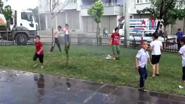 -Çocukların sıkılan suyla serinlemeye çalışması