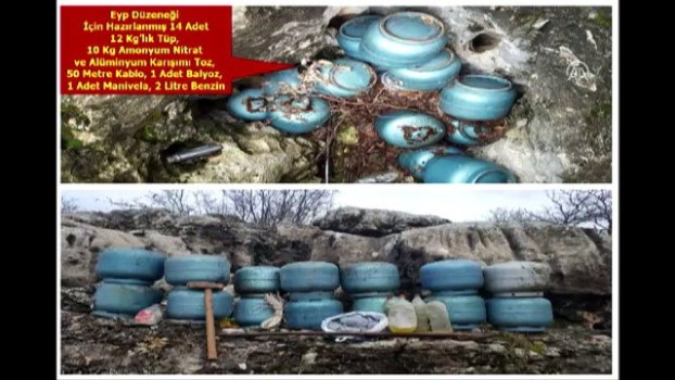 5 mutfak tüpü ve yağ tenekelerinden istifadeyle 260 kilogram amonyum nitrat ve alüminyum tozu karışımıyla hazırlanarak karayolu kenarı ve araziye tuzaklanan 3 el yapımı patlayıcı düzeneği de uzman ekip tarafından yerinde tahrip edildi.Yolçatı ve Dibekköy köyleri mülki sınırları içerisindeki sığınak, mağara, ağaçlık, çalılık ve kayalık alanlar ile toprağa gömülü 4 keskin nişancı tüfeği şarjörü, 21'i 12 kilogramlık 22 tüp, 8'li pil bloğu, 2 litre benzin, 80 metre elektrik kablosu ve 400 kilogram un, 15 kilogram çay, 120 kilogram şeker, 25 kilogram tuz, 5 konserve, balyoz, 10 ampul, 4 sargı bezi, 25 neşter, 3 cam şişe içerisinde tıbbi alkol ve ameliyat makası bulundu.Yol kontrol faaliyetleri ile adli aramalar sonucunda 726 kişi ve 337 aracın sorgulaması yapıldı. Operasyon bölgesinde 14 konut ve eklentisinde adli arama faaliyeti gerçekleştirildi, aranan 12 kişi hakkında adli işlemlere başlanıldı. - 1 ton 827 kilogram esrarNarkoterörizmle mücadele faaliyeti kapsamında 1 ton 772 kilogram toz ve 55 kilogram kubar olmak üzere 1 ton 827 kilogram esrar ele geçirildi.Bölgede yaşayan vatandaşların huzur ve güvenliğinin sağlanması ve terörle mücadele kapsamında yürütülen operasyonlara artan azim ve kararlılıkla devam edilecek.