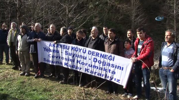 - Trabzon’un Maçka ilçesinde bir grup vatandaş, mahallelerine yapılmak istenilen HES’e karşı çıktı. Maçka ilçesindeki Akarsu mahallesinde yaşayan vatandaşlar Trabzon Büyükşehir Belediye Meclisi tarafından verilen HES iptal kararına rağmen ilgili firma tarafından yapılmak istenilen projeye tepki gösterdi. HES projesinin yapılmak istendiği alanda toplanan Akarsu Mahallesi sakinleri, “Yolunu, suyunu, doğasını, çevresini korumakta sonuna kadar kararlıyız” yazılı pankartı açarak durumu protesto ettiler. Mahalle sakinlerine adına basın açıklamasını yapan Serkan Yıldız, mahallelerindeki HES projesinin iptal kararına rağmen firmanın bölgeye iş makineleri ile gelerek usulsüz bir şekilde ağaçları kestiğini belirterek, durumu belediyeye bildirdiklerini ve iş makinelerinin ortadan kaybolduğunu söyledi.