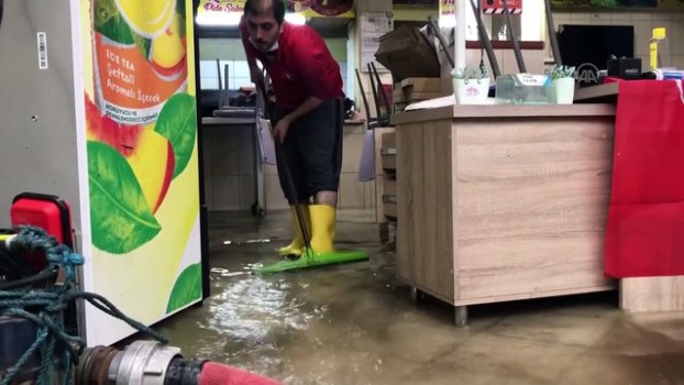 Ekiplerin şu ana kadar su baskını oluşan 5 iş yeri ve 3 ev ile 12 kanalizasyon taşkınına müdahale ettiği kaydedildi.