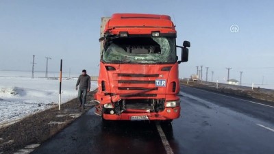 - Trafik kazasının olduğu mevkiden detay - Kaza yapan araçlardan detay - Ambulansların yaralıları götürmesinden detay - Olay yerindeki ekiplerin çalışmasından detay Ağrı 'da trafik kazası: 3 ölü, 11 yaralı - Buzlanma ve sisin etkili olduğu karayolunda minibüs ile tırın çarpıştığı kazada 3 kişi öldü, 11 kişi yaralandıAĞRI (AA) - Ağrı 'da meydana gelen trafik kazasında 3 kişi öldü, 11 kişi yaralandı.Sürücüleri henüz belirlenemeyen İran plakalı tır ile 04 AC 052 plakalı minibüs, buzlanma ve sisin etkili olduğu Ağrı - Erzurum karayolu Aslan Gazi köyü mevkisinde çarpıştı. Kaza sonrası minibüs şarampole devrildi.Kazayı gören 27 VN 839 plakalı minibüsün sürücüsü de kaza yapan araçlara çarpmamak için refüje çıktı.Bölgeye çok sayıda AFAD ve 112 Acil Servis ile polis ekibi sevk edildi. Kazada 3 kişi olay yerinde hayatını kaybetti. Araçlarda sıkışan 11 yaralı, AFAD ve çevredekilerin kurtarma çalışmalarının ardından Ağrı 'daki hastanelerde tedavi altına alındı.Kaza nedeniyle aksayan ulaşım, araçların kaldırılmasının ardından normale döndü. PolisHastaneİranTrafik Kazası