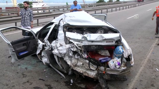 - Kaza yapan araçlardan görüntü - Otomobilin yoldan kaldırılışı - D - 100 karayolu İstanbul yönü trafik detayı - Genel görüntüler Kocaeli 'de trafik kazası: 6 yaralıKOCAELİ (AA) - Kocaeli 'nin Körfez ilçesinde tır ile otomobilin çarpışması sonucu 2'si çocuk 6 kişi yaralandı.Alınan bilgiye göre, Körfez D100 karayolundan İstanbul istikametine seyir halinde olan Aydın Akbaş idaresindeki 34 GPJ 76 plakalı konteyner yüklü tır, Mehmet Beşmiş idaresindeki 63 KZ 484 plakalı otomobile arkadan çarptı.Kazada, otomobilin sürücüsü, araçta bulunan Suzan (48), Rahime (47), Dilan (9) ve Ramazan Beşmiş (7) ile tır sürücüsü Akbaş yaralandı.Çarpmanın etkisiyle otomobilin arka koltuğunda sıkışan iki kişi, itfaiye ekipleri tarafından çıkartılarak ambulansa alındı.Sağlık ekiplerinin ilk müdahalesinin ardından yaralılar, Darıca Farabi Devlet Hastanesi ve Gebze Fatih Devlet Hastanesi'ne kaldırıldı.Otomobildeki yaralıların sağlık durumunun ciddiyetini koruduğu öğrenildi.Kaza nedeniyle bir süre kontrollü olarak sağlanan ulaşım, araçların kaldırılmasının ardından normale döndü. İlk MüdahaleTrafik KazasıBildTrol
