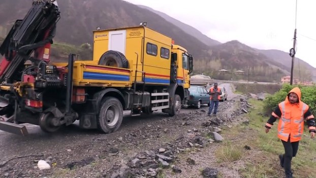 - Tren yolundan genel ve detay görüntü - Jandarma ekiplerinden görüntü - Toprak kayması yaşanan tren yolundan görüntüTren seferlerine toprak kayması engeli - Erzincan 'ın Üzümlü ilçesinde tren hattındaki toprak kayması sebebiyle Erzurum - Erzincan demir yolundaki tren seferleri durdurulduERZİNCAN (AA) - Erzurum - Erzincan demir yolundaki tren seferleri, tren raylarındaki toprak kayması sebebiyle durduruldu. Erzincan 'ın Üzümlü ilçesindeki Tanyeri Jandarma Komutanlığı ekipleri yaptıkları devriye sırasında Erzincan - Erzurum arasındaki tren hattının Üzümlü ilçesine bağlı Bağlar köyü mevkisinde, son günlerdeki yağışlar yüzünden su seviyesi yükselen Karasu Nehri'nin rayların altındaki toprağın kaymasına neden olduğunu tespit etti.Toprak kaymasının tren hattının altına döşenen ve hattı yan etkilere karşı ekseninde tutup raylara dik yönde belirli aralıklarla döşenen parçalardan oluşan "travers" tabir edilen alana kadar geldiğini belirleyen jandarma, tren seferleri açısından risk oluşmaması için durumu Türkiye Cumhuriyeti Devlet Demiryolları (TCDD) yetkililerine bildirdi.Bölgeye gelen TCDD'ye bağlı Mercan Yol Bakım Şefliği görevlilerince yapılan kontroller doğrultusunda tren seferleri, herhangi bir risk yaşanmaması için çift yönlü ulaşıma kapatıldı. Erzincan Valisi Ali Arslantaş da İl Jandarma Komutanı Albay Hasan Aksoylu, İl Afet ve Acil Durum Müdür Vekili (AFAD) Kadir Çelik ile bölgeye gelerek incelemelerde bulundu, ilgililerden bilgi aldı.Tren hattaki hasarın Erzincan Devlet Demiryolları Trafik Kontrollüğü ekiplerince giderilmesinin ardından seferlerinin yeniden başlayacağı belirtildi.Jandarma ve TCDD görevlilerinin bölgedeki önlemlerinin devam ettiği öğrenildi Tren SeferleriYan EtkiTren RaylarıToprak KaymasıYükselen