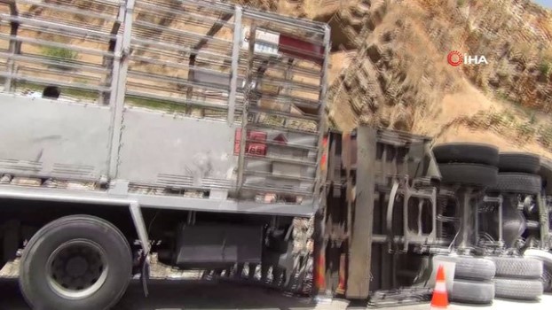 Tüplerin başka bir araca yüklenmesinin ardından kaza yapan kamyon bulunduğu yerden kaldırıldı. Yükleme sırasında bölgede bir itfaiye aracı ile ambulans hazır bekletildi.