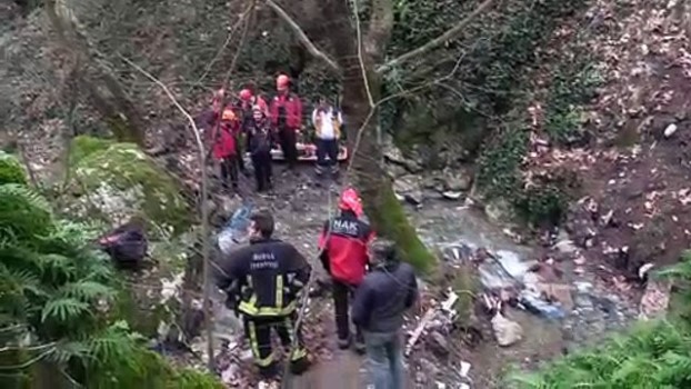- Bursa 'da uçurumdan düşen kişi öldü - Olay yerinden detaylar - Olay yerine gelen ekiplerden görüntüler Bursa 'da uçurumdan düşen kişi öldüBURSA (AA) - Bursa 'da 30 metre yükseklikteki uçurumdan dere yatağına düşen kişi hayatını kaybetti.Alınan bilgiye göre, arkadaşlarıyla merkez Nilüfer ilçesindeki Çalı ve Atlas Mahalleleri arasında kalan futbol sahasına gelen Fahri Tuna, burada alkol aldı.Bir süre sonra burada dolaşırken dengesini kaybeden Tuna, 30 metrelik uçurumdan dere yatağına düştü.Arkadaşlarının ihbarı üzerine olay yerine 112 Acil Servis, AFAD, UMKE, itfaiye ve polis ekipleri sevk edildi.Arazinin sarp olması nedeniyle araçların giremediği alana yayan inen ekipler, ulaştıkları Tuna'nın hayatını kaybettiğini belirledi.Ekipler tarafından bulunduğu yerden çıkarılan Tuna'nın cesedi, otopsi için Bursa Adli Tıp Kurumu morguna gönderildi. PolisFutbol SahasıGesiPolis EkipleriDere Yatağı