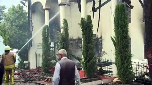 Üsküdar'da tarihi camide yangın - Soğutma çalışmaları - İSTANBUL