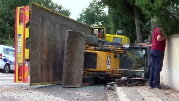 - Kaza yapan kamyondan detaylar - İş makinesi yüklü kamyon, bir binanın bahçe duvarına çarparak devrildiİSTANBUL (AA) - Üsküdar'da iş makinesi yüklü kamyon, bir binanın bahçe duvarına çarparak devrildi.Güzeltepe Mahallesi'nde Selahattin Demirkıran idaresindeki 34 VL 1867 plakalı iş makinesi yüklü kamyon, seyir halindeyken Pembegül Sokak ile Beyazköşk Sokak kesişiminde sürücüsünün direksiyon hakimiyetini kaybetmesi üzerine bir binanın bahçe duvarına çarparak devrildi.Kazada sürücü Demirkıran, yara almadan kurtuldu. Kamyonda ve bahçe duvarında hasar meydana geldi. İş MakinesiDireksiyon