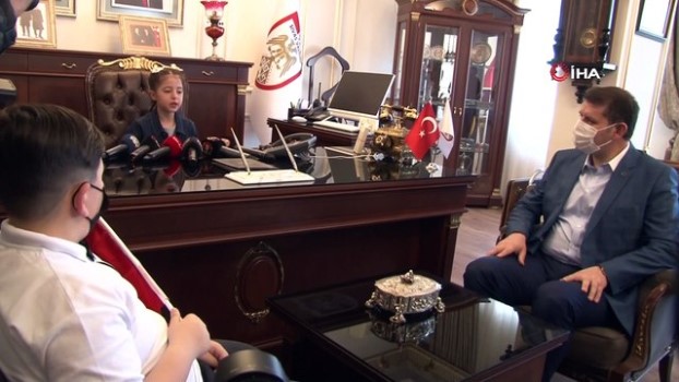 Vali Ayhan’ın koltuğuna oturan çocuklardan anlamlı talimat