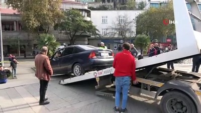 Valilik önünde hareketli anlar... Yolu karıştıran otomobil merdivenlerde askıda kaldı