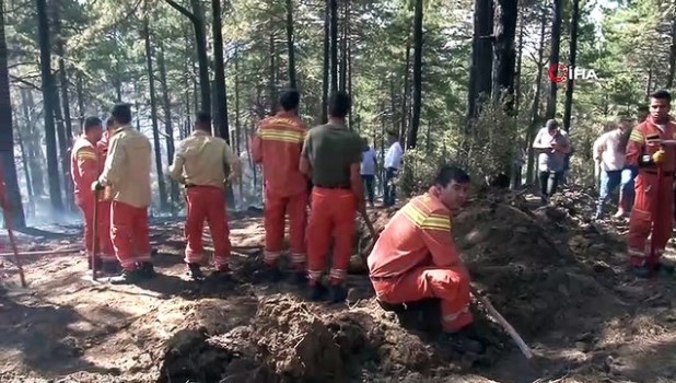 Vatandaşların kazma küreklerle koştuğu orman yangını söndürüldü