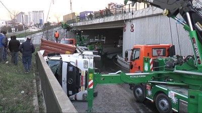 - Hadımköy TEM bağlantı yolu alt geçidi virajını alamayan konteyner yüklü tır, yan yatarak devrildi. Kaza sonucu araçta bulunan sürücü hafif şekilde yaralandı. Olay yerinde 112 sağlık ekipleri tarafından ilk müdahalesi yapılan sürücü, hastaneye kaldırılarak tedavi altına alındı. Olay, saat 17.15 sıralarında Hadımköy gişelerdeki TEM bağlantı yolu alt geçidinde meydana geldi. İddiaya göre; Hadımköy TEM bağlantı yolu alt geçidinden geçen tır sürücüsünün virajı alamaması sonrası konteyner yüklü tır yan yatarak devrildi. Kazayı gören çevredeki vatandaşların haber vermesi üzerine olay yerine polis, itfaiye ve 112 sağlık ekipleri sevk edildi. Yaralı vatandaş, itfaiye ve sağlık ekipleri tarafından aracın içerisinden çıkartılarak ilk müdahalesi olay yerinde yapıldı. Sonrasında ise sedye ile ambulansa bindirilen yaralı sürücü çevredeki bir hastaneye kaldırıldı. Kaza nedeniyle TEM bağlantı yolunda yoğun trafik oluştu. Olay yerine gelen vinç ile devrilen tırın kaldırılma çalışmalarına başlandı. Polisin kazayla ilgili soruşturması devam ediyor.