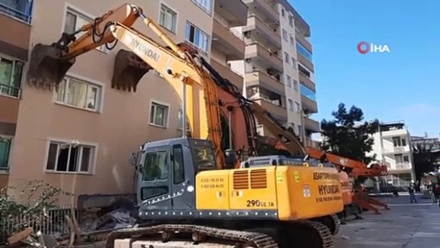 - İzmir depreminde yan yatan ve yıkılmaması için iş makineleriyle desteklenen Barış Sitesi’nin en kazında olduğu tahmin edilen 7 cansız bedenin yerini, jandarmaya ait hassas burunlu kadavra arama köpeği belirledi. İzmir’de meydana gelen 6,6’lık deprem sonrasında 4 bloğundan 3’ü yan yatan ve çökme tehlikesine karşı iş makineleriyle desteklenen binalardan şuana kadar 3 kişinin cansız bedeni çıkartıldı. Ölenlerden birisi olan Çınar Eren’in babaannesi olan 62 yaşındaki Emine Eren depremden 14 saat, Buse Hasyılmaz 9,5 saat ve 17 saat sonra ise Nurcan Tosun yaralı olarak kurtarıldı. Kadavra köpeğiyle yer tespiti yapıldı Enkaz altında cansız 7 kişinin bulunduğu tahmin edilen binalara, yüksek göçük riski nedeniyle sınırlı ölçülerde girebilen AFAD ekipleri, dairelerde arama kurtarma ve kıymetli eşyaların tahliyesini sürdürüyor. Çalışmalara destek veren Jandarma Arama Kurtarma Timi (JAK), kadavra arama köpeği ‘Pelte’nin hassas burnuyla, cenazelerin olabileceği tahmini bölgeleri tespit etti. Çevre ve Şehircilik Bakanlığı uzmanlarının da denetim yaptığı binalar için verilecek raporun ardından, göçük altında kalan cenazeleri çıkarma çalışmalarına hassas burunlu köpeğin hassasiyet gösterdiği noktalardan başlanılacağı öğrenildi. Yıkılan duvardaki yaşlı kadın resmine hiçbir şey olmadı Barış Sitesi’nin şuana kadar 2 kişinin ölü olarak çıkarıldığı ilk bloğunun 3 katı, 8 katkı binada yaşanan çökme nedeniyle zemin kata dönüştü. AFAD ekiplerinin duvarını delerek girdiği dairenin çatlak ve dökük duvarında asılı olan yaşlı bir kadına ait fotoğrafa hiçbir şey olmaması dikkat çekti. Aynı müteahhittin yaptığı 12 bloktan 5’i yan yattı Sokakta karşılıklı olarak bulunan ve aynı müteahhittin yaptığı iddia edilen Barış Sitesi’ndeki 4 bloktan 3’ü, Cumhuriyet Sitesi’nin ise 8 bloğundan 2’si hem çöktü hem de yan yattı. Bakanlık yetkilileri, yaşanan yıkımla ilgili soruşturma başlattı.
