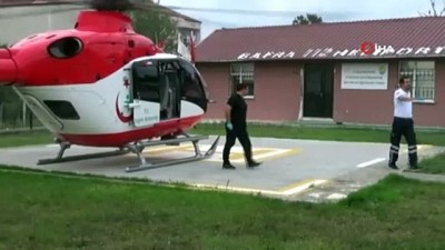 Yaralanan motosiklet sürücüsü için helikopter havalandı