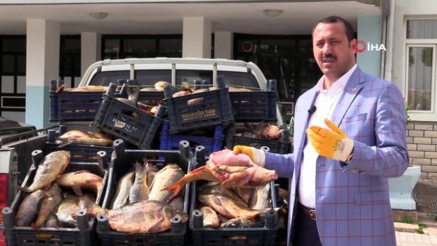 Ele geçirilen sazan balıkları imha edilmek üzere İl Tarım ve Orman Müdürlüğü'ne getirildi.