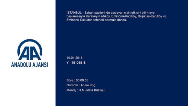 - Sisten detaylar İstanbul 'daki yoğun sis - Karaköy - Kadıköy, Eminönü - Kadıköy, Beşiktaş - Kadıköy ve Eminönü - Üsküdar seferleri normale döndüİSTANBUL (AA) - İstanbul 'da sabah saatlerinde başlayan sisin etkisini yitirmeye başlamasıyla Karaköy - Kadıköy, Eminönü - Kadıköy, Beşiktaş - Kadıköy ve Eminönü - Üsküdar seferleri normale döndü.Şehir Hatları'ndan yapılan açıklamaya göre, sisin etkisini yitirdiği bölgelerde, Karaköy - Kadıköy, Eminönü - Kadıköy, Beşiktaş - Kadıköy ve Eminönü - Üsküdar seferleri yeniden başladı. Yoğun sis nedeniyle Şehir Hatları'nın tüm seferleri, saat 07.05 itibarıyla iptal edilmişti.