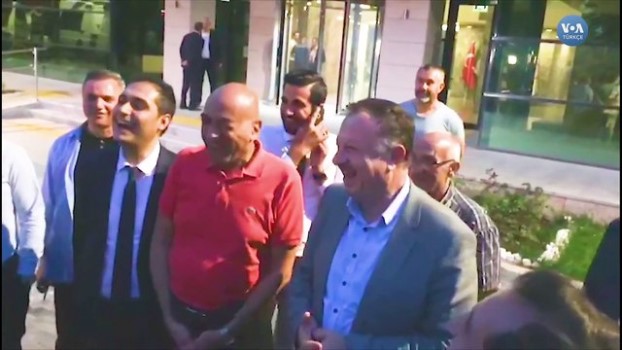 Ankara'daki YSK binası önünde CHP temsilcisi Mehmet Hadimi Yakupoğlu ve AKP temsilcisi Recep Özel birlikte basın mensuplarına renkli görüntüler verdi.