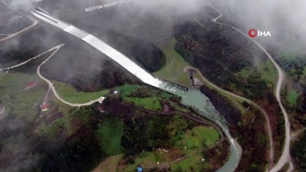 ( KOCAELİ -DRONE-ÖZEL)- Kuvvetli yağış uyarısı sonrasında, dolan barajın kapakları açıldı KOCAELİ