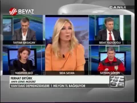 Beyaz Tv'de ekrana gelen Deprem Özel yayınına bağlanan ANFA Genel Müdürü Ferhat Ertürk, Van'daki depremzedelere göndermek için şirket olarak Kızılay'a 1 milyon TL bağışta bulunacaklarını açıkladı.