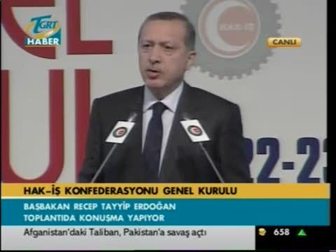 Başbakan Recep Tayyip Erdoğan, Hak-İş Konfederasyonu'nun 12. Olağan Genel Kurulu'nda katılımcılara hitap etti. Türkiye'nin yaşadığı terör felaketine ilişkin çarpıcı açıklamalarda bulunan Başbakan Erdoğan, konuşmasının bir bölümünde de Hakkari'deki hain saldırıyı terör eylemi olarak görmemekle suçladığı BDP'ye yüklendi.