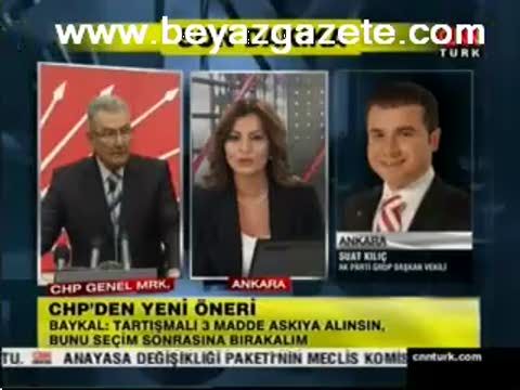 CHP lideri Deniz Baykal'ın 3 madde askıya alınsın önerisine ilk tepki AK Parti Grup Başkanvekili Suat Kılıç'tan geldi. Kılıç, "Baykal açık olan kapıyı yeni önerisiyle kapattı" dedi.