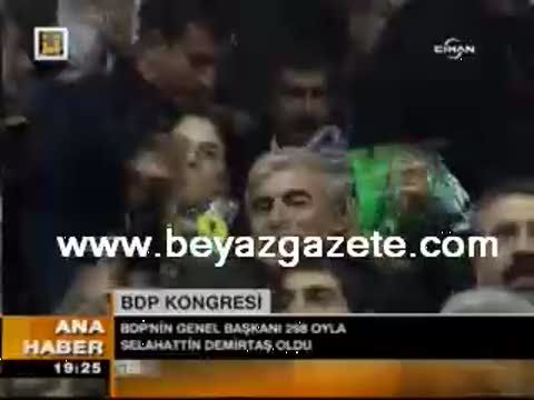 Barış ve Demokrasi Partisi'nin 1. Olağanüstü Büyük Kongresi'nde bölücübaşı Abdullah Öcalan'ın ve terör örgütü PKK'nın posteri açıldı.