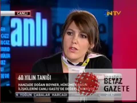 NTV ekranlarında yayınlanan Canlı Gaste isimli programa Doğan Gazetecilik Yönetim Kurulu Başkanı Hanzade Doğan Boyner konuk oldu. Gündeme dair ve bir çok konunun konuşulduğu programda sunucu Can Dündar Boyner'e Hükümet ve Doğan Grubu arasındaki gerginliği sordu.Dündar'ın sorusunu "Burada açıkcası büyük bir haksızlığa maruz kaldığımızı düşünüyorum" diyerek yanıtlamaya başlayan Boyner, "Bazen önyargıların kurbanı olduğumuza inanıyorum çünkü Türkiye'de Doğan Grubu'nun şu şekilde tavır aldığı ya da bu şekilde tavır aldığı yönünde ön yargılar var. Ama bizim gruba bakarsanız grupta her gazetenin farklı tavırlar aldığı oluyor" ifadelerini kullandı.