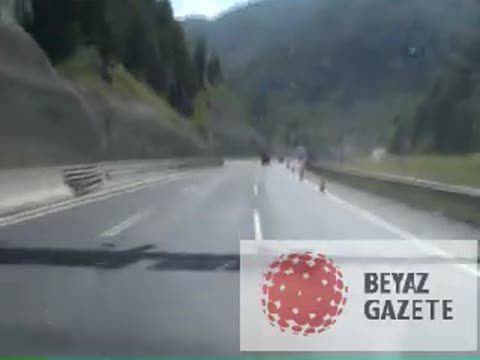 İstanbul - Ankara otobanında bir kamyondan fırlayan lastik korku dolu anlar yaşattı. Hızla giden araçlarla yarışan lastik yoldan geçen bir vatandaş tarafından görüntülendi.Karabük'te mağazalarının açılışı için yola çıkan bir firma sahibi İstanbul - Ankara otobanında seyir ederken bir anda yanlarında giden kamyon tekerliğini görünce şaşkına döndü. Araç içersinde bulunan Adil Koçalan yanında bulunan kamerasını alarak kendileri ile otobanda yanyana giden lastiğin ilginç görüntüsünü kayda aldı.
