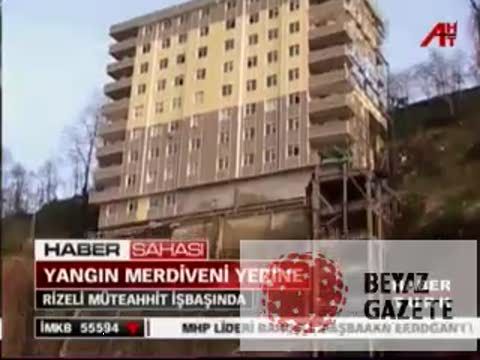 Rize'nin olay müteahiti yine iş başında. 8 katlı binaya inşa ettiği 164 basamaklı merdivenle gündeme gelen Rizeli müteahit bu kez de binalar arasına yaptığı köprü ile haberlere konu oldu.Türkiye'nin bir yamaca inşa ettiği 8 katlı bina ile tanıdığı Güngör, fıkralara konu olacak bir uygulamaya daha imza attı.Yan yana inşa ettiği 7 katlı 2 binaya yeterli alan olmadığı için yangın merdiveni yapmayan Güngör, kendince bu sorunu binaları yarı ahşap köprü ile birbirine bağlayarak aştı.