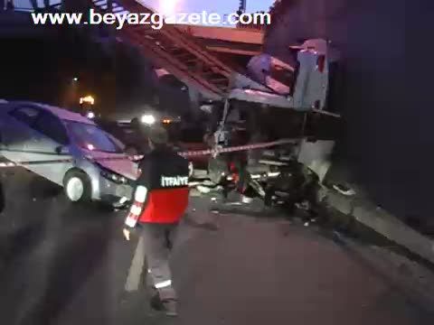 Otomobil yüklü TIR, sürücüsünün direksiyon hakimiyetini kaybetmesiyle alt geçide uçtu.