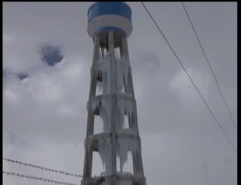 Van'da yaşanan aşırı soğuktan dolayı donan 20 metre yükseklikteki su deposun sarkan buzlar ilginç bir görüntü oluşturuyor.