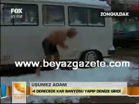 Eksi 4 derecede denize giren Buz Adam lakaplı vatandaş görenleri şaşkına çeviriyor.