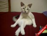 Bacak bacak üstüne oturan sevimli kedi izleyenlerde tebessüm oluşturuyor.