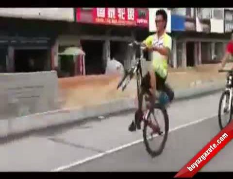 Bu şahıs bisikletin tekerini havaya kaldırmayı aşmış tekeri olmayan bisikletle resmen şov yapıyor!