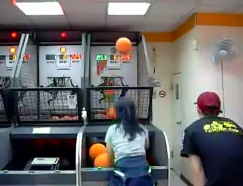 Genç kız arkadaşı basketbol topunu delikten sokmak için yarışa giriyor ve bakın neler yapıyor...