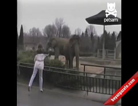Fil ile oyun oynayan bu kadın oldukça keyif alıyor.