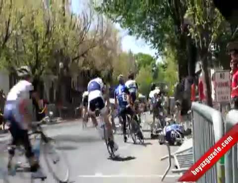 Virajı alamayan bisikletçiler talihsiz bir kaza geçirdiler.