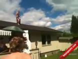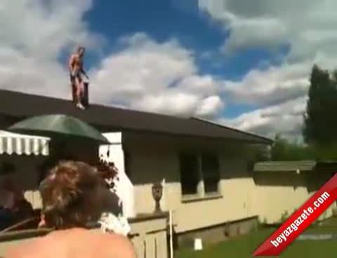 Çatının üzerinden havuza atlayan adamın cesareti tartışma konusu oldu.