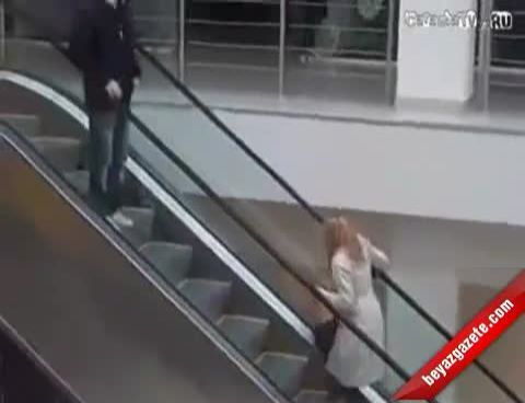 Merdiveni tersten çıkmaya çalışan bu sarışın kameralara böyle yansıdı.