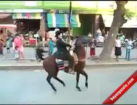 Çılgın at üzerinden inmeyen kişiyi bakın nasıl zorla indiriyor...