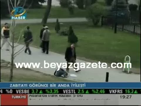 Samsun ' da yerde hasta taklidi yaparak para toplayan dilenci karşısında zabıtaları görünce birdenbire iyileşti.