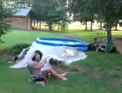 Sandalyesinde otururken serinlemek isteyen bu adam aniden havuza ateş ediyor sonrada bakın neler oluyor...