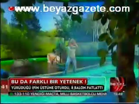 Almanya ' nın Münih kentinde bir üniversite öğrencisi katıldığı bir yarışmada bitin dikkatleri üzerine çekti. Alman genç üzerinde yürüdüğü esnek ipin üzerine oturarak 8 balonu patlattı ve bu sayede bir otomobil kazandı.