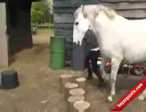 Genç eğitmene atın birden bire tekme atması kameraya böyle yansıyor.
